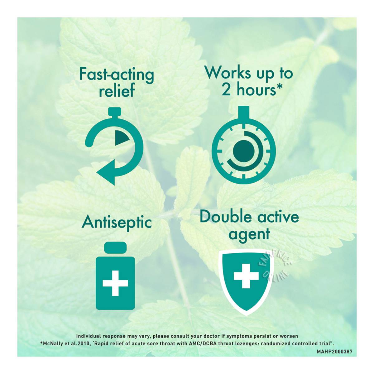 | PREPARATION | Dissolve a lozenge slowly in the mouth every 2 to 3 hours |