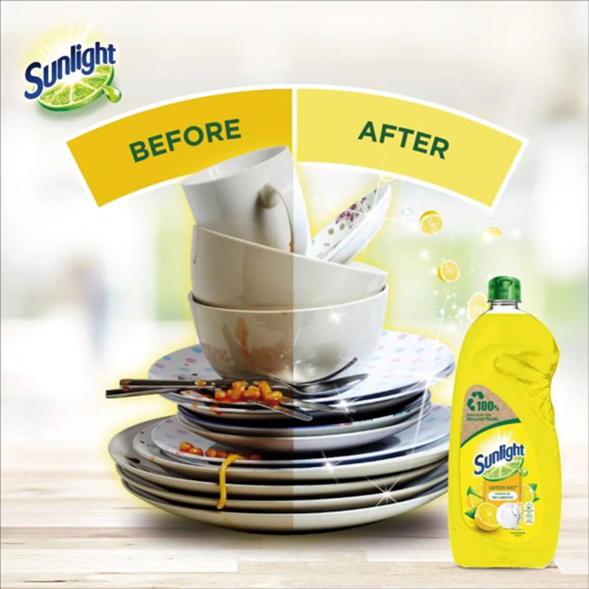 | KEY INFORMATION | Dishwashing Liquid – Extra Gentle Power of 100 Lemons, Touch on crease and gentle on hand. New Sunlight extra Gentel combines the natural goodness of Lemons with Sunlight’s degreasing power to remove stubborn grease leaving your dishes sparkling clean. Its dermatologically tested to be gentel on hands. Making it tough on grease yet gentle on hands. 100% bottle made from recycled Plastic. |