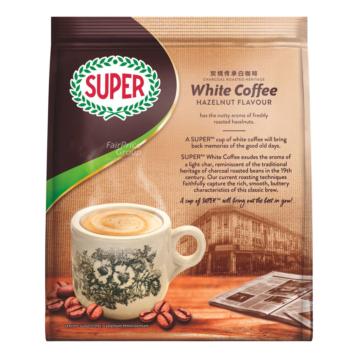 | KEY INFORMATION | Inspired from the traditional coffee-shop culture in Ipoh, Malaysia, dating back to the 19th Century. Super’s roasting techniques capture the richer, smoother, buttery characteristics of this classic brew. The 3 in 1 Roasted Hazelnut White Coffee is a premium blend of arabica and robusta coffee to produce a rich and buttery smooth profile that is overall a well-balanced taste. The beans are charcoal roasted to perfection which offers a rich nutty taste to the traditional favourite. |