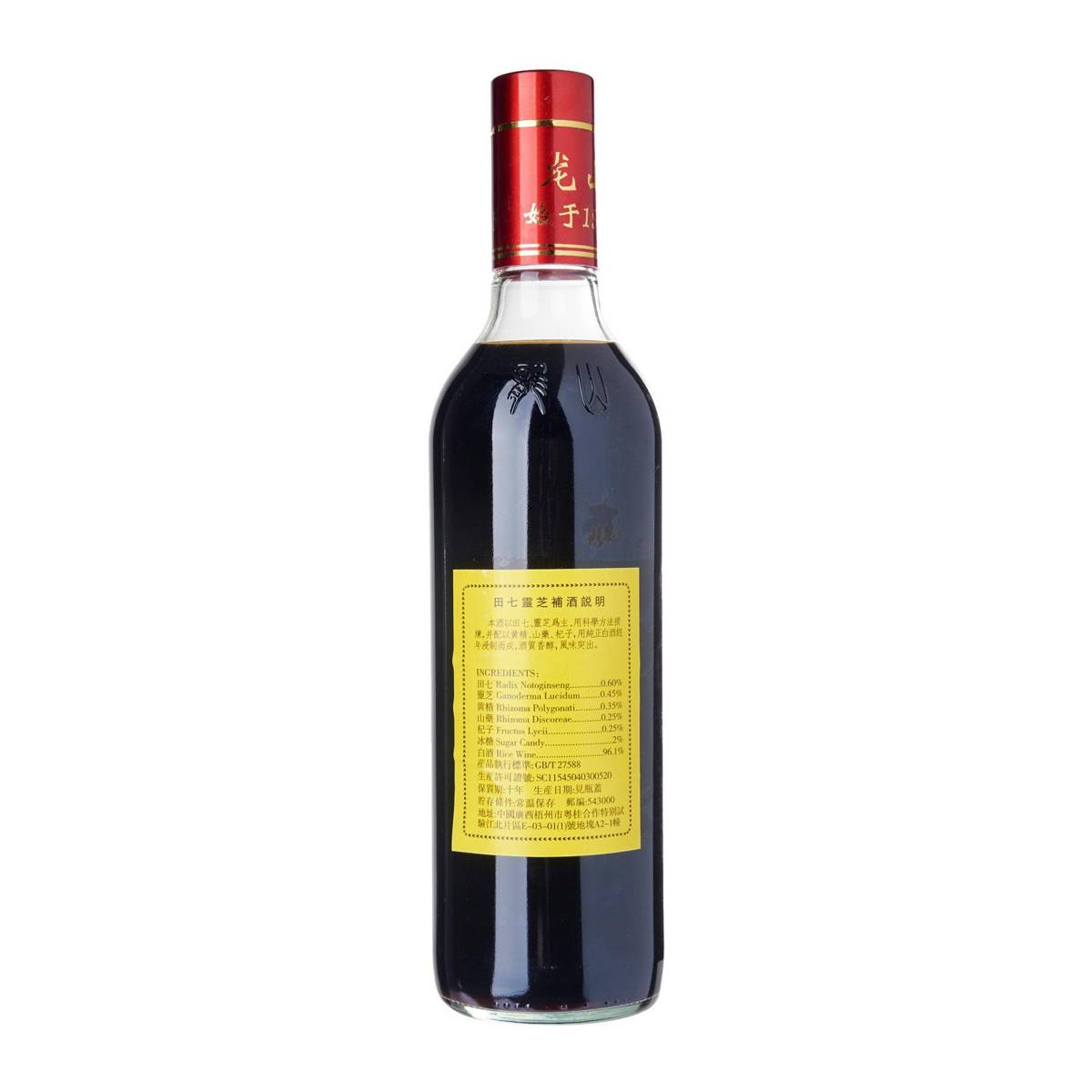 | – | Traditional Tonic Wine manufactured with medicinal herbs according to traditional formula using Tian Qi and Lingzhi. Promotes blood circulation, restoring muscular flexibility. Well-known for its benefits that helps increase stamina, nourish blood. |