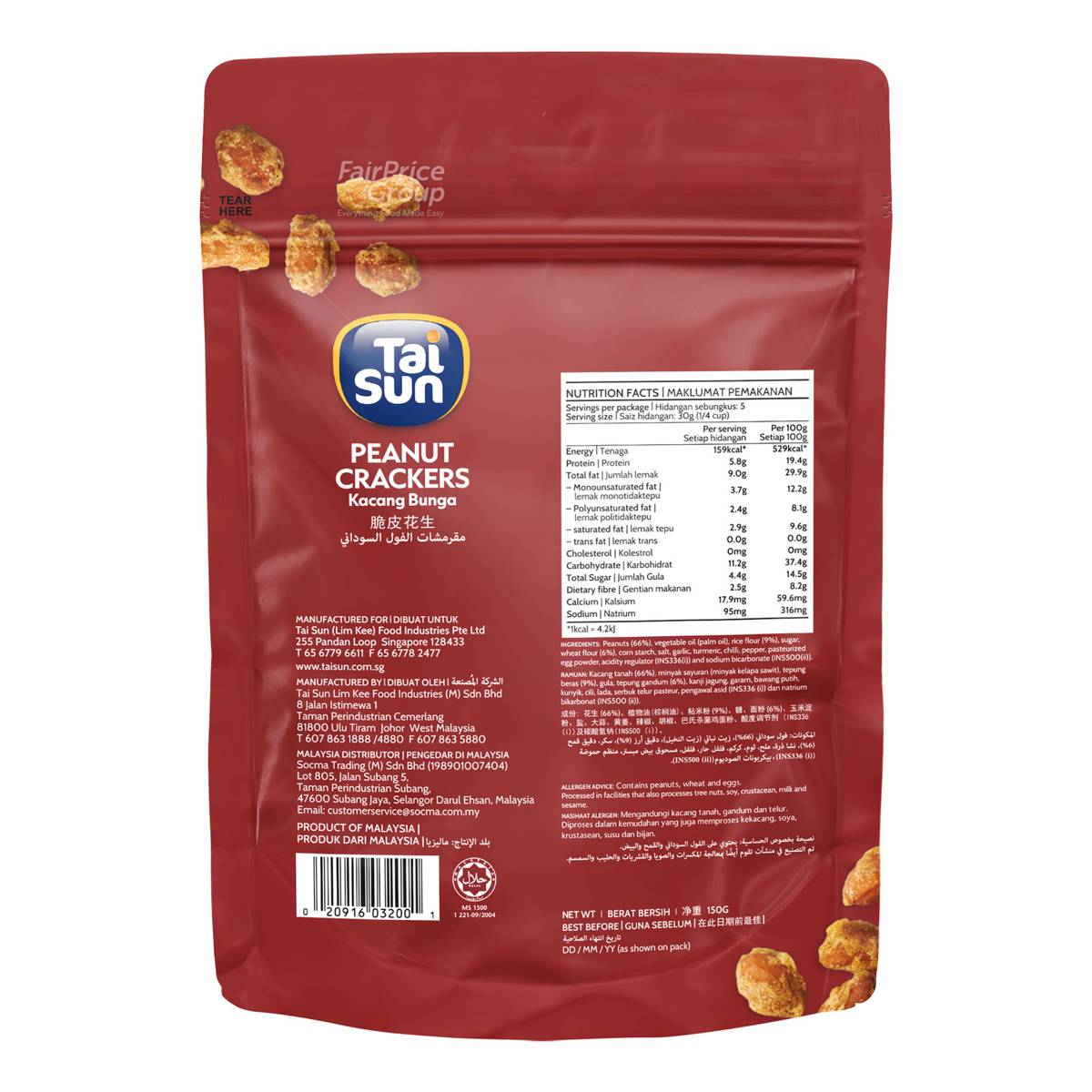| KEY INFORMATION | Tai Sun nuts are a delicious source of health and good living. Our peanut crackers are the tasty favourite often found at parties or in the hands of snack-lovers. So fresh, crunchy, you will even enjoy the crackling sounds. |
