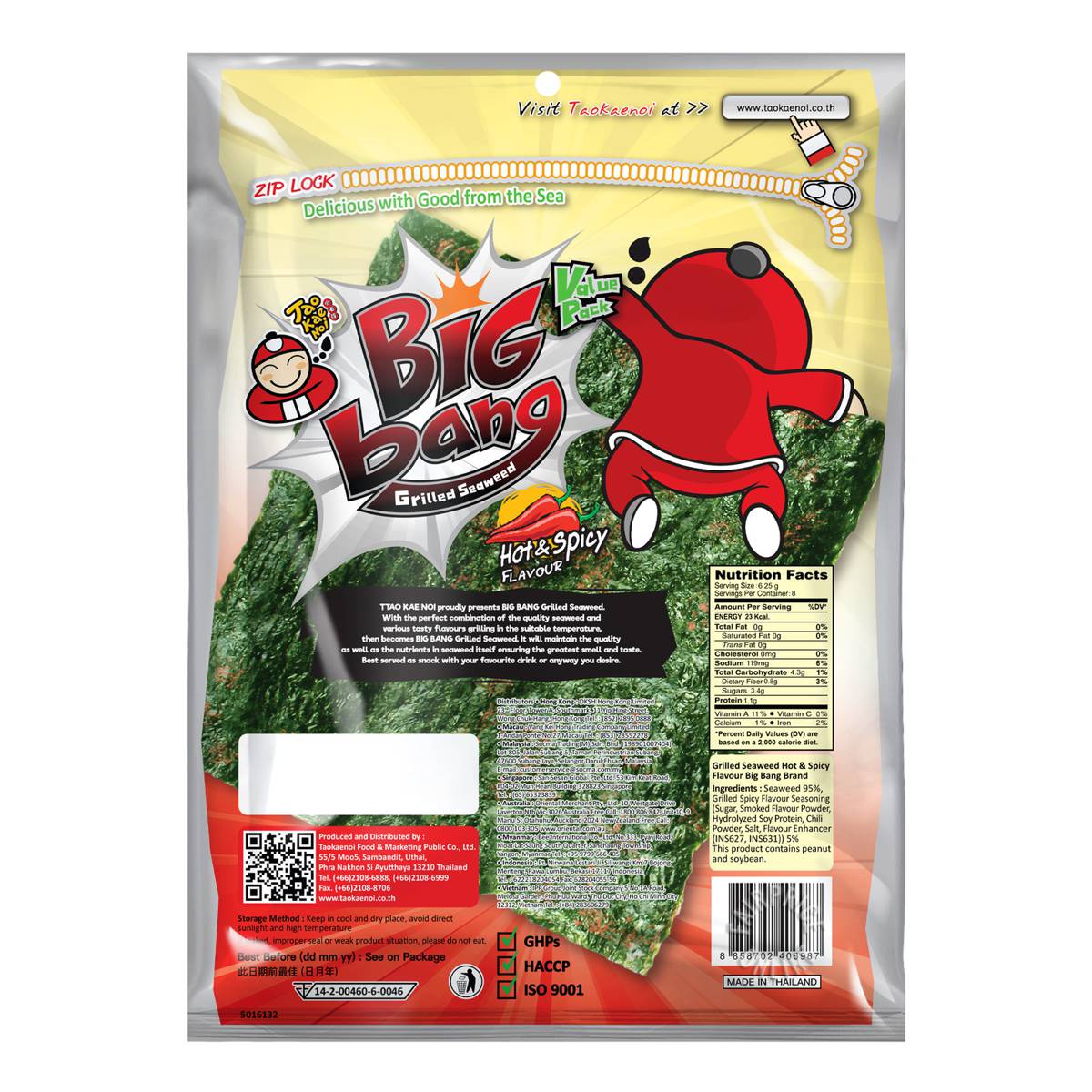 | KEY INFORMATION | With the perfect combination of the high quality seaweed and three new tasty flavours (Hot and Spicy, Spicy Grilled Squid and Classic) grilling in the suitable temperature, it becomes Big Bang Grilled Seaweed. |