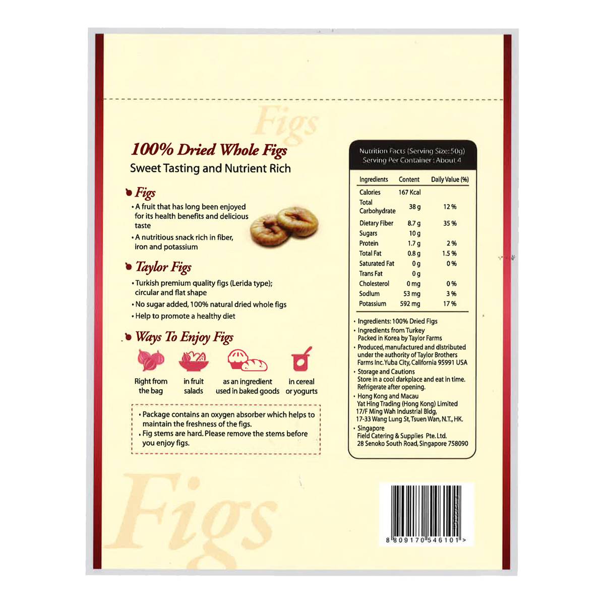 | – | • 100% natural dried soft and delicious whole figs with no sugar added |