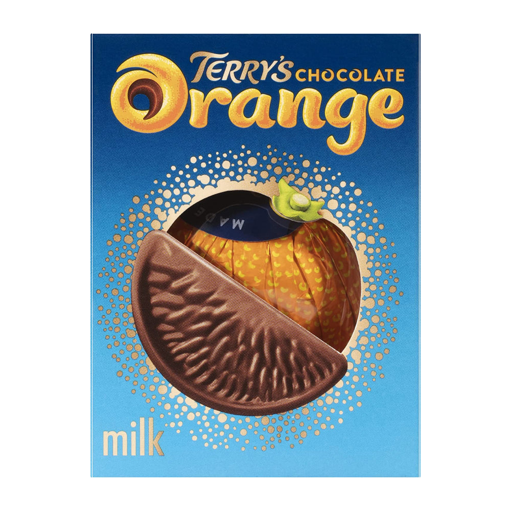 Terry’s Chocolate Orange is a winning combination of delicious chocolate flavoured with natural orange oil.Far more than just a chocolate. Terry’s Chocolate Orange is a full experience. “Tap it. unwrap it and enjoy it” is a ritual that has been tempting the UK for nearly 90 years; There is nothing else like it. With its original round shape and fun personality. it has become the must-have of Christmas and the perfect token gift all year round.