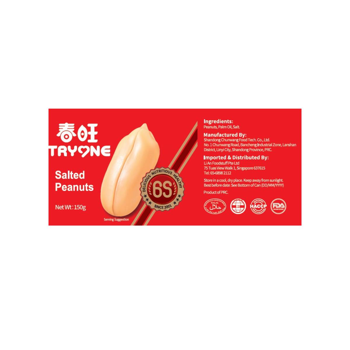 | KEY INFORMATION | Made from carefully selected, high-quality peanuts, Tryone Salted Peanuts offer a rich, nutty flavor with a perfectly balanced touch of salt—an elevated snacking experience in every bite. |