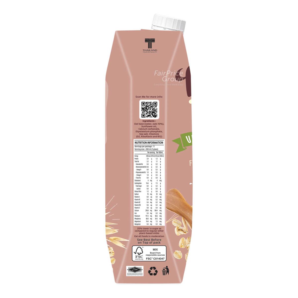 | KEY INFORMATION | From dawn to dusk, make yours a velvety day with UFC Velvet Oat Milk. Made from selected quality organic oats with added calcium and contains Vitamin D2, B2 and B12 |