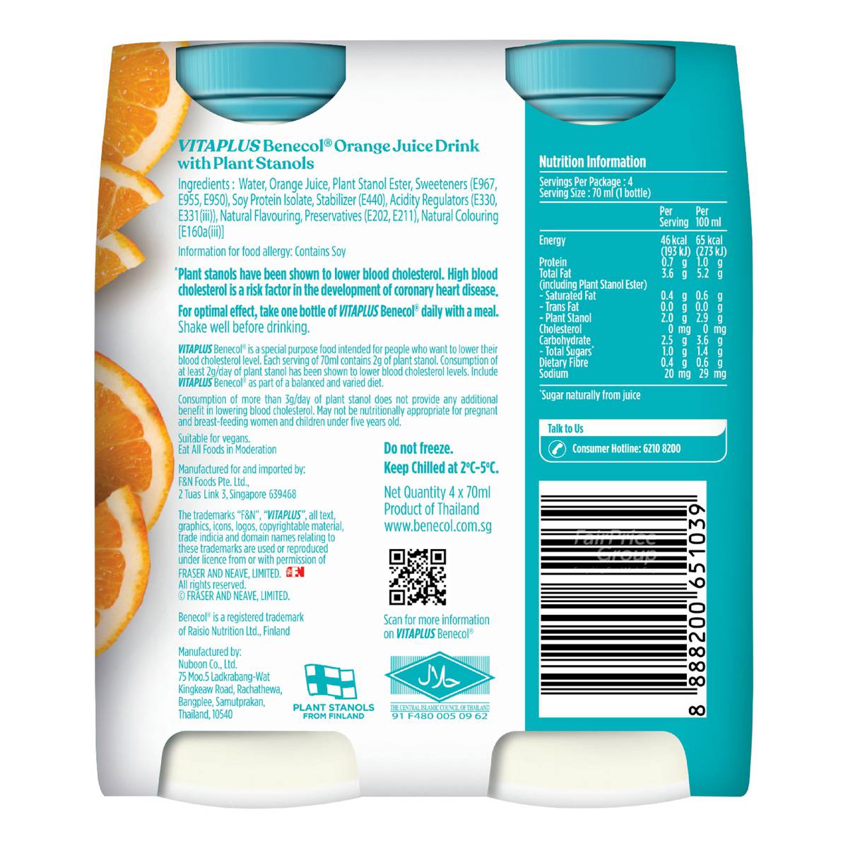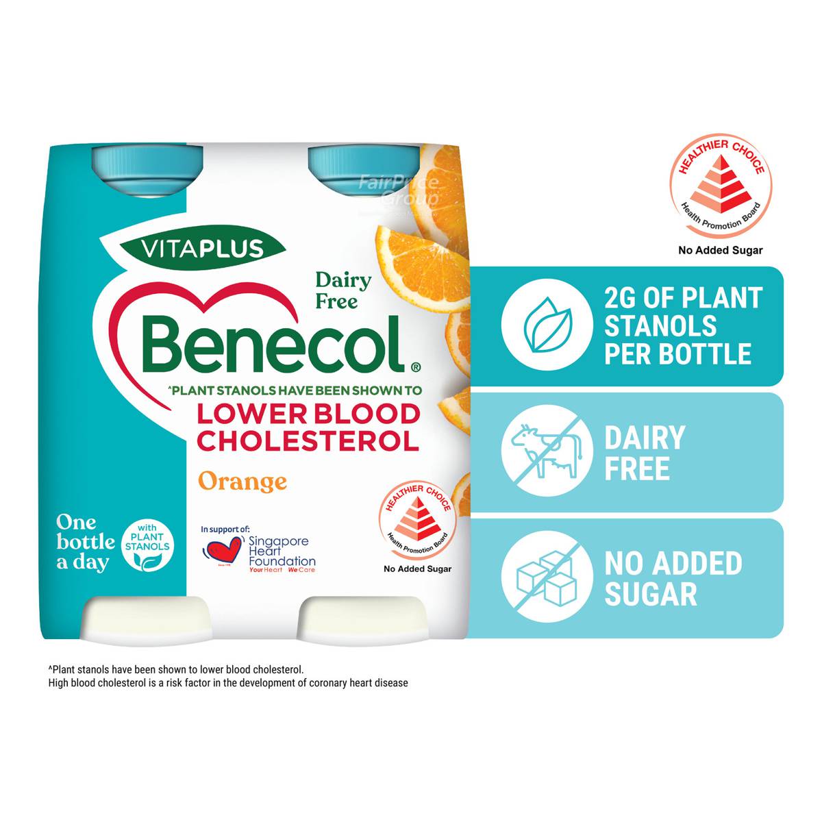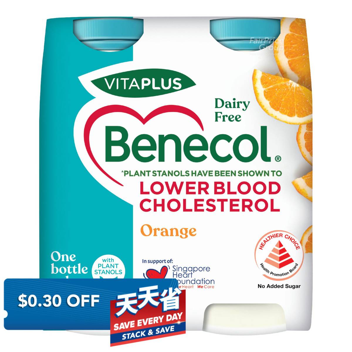 | KEY INFORMATION | Special purpose food intended for people who want to lower their blood cholesterol level. Each serving contains 2g of plant stanols. Consumption of at least 2g/day of plant stanol has been shown to lower blood cholesterol levels. VITAPLUS Benecol® contains 7g of plant stanols, which is found naturally mainly in grains, but also in corn, fruits and vegetables. Clinical studies have shown that plant stanols can lower blood cholesterol when taken daily with a meal. |