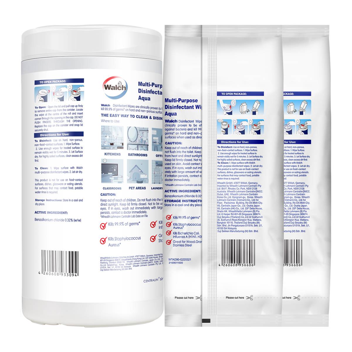 | – | •Walch Multi-purpose Disinfectant Wipes Refill 90pcs – Aqua x 2 Packs |
