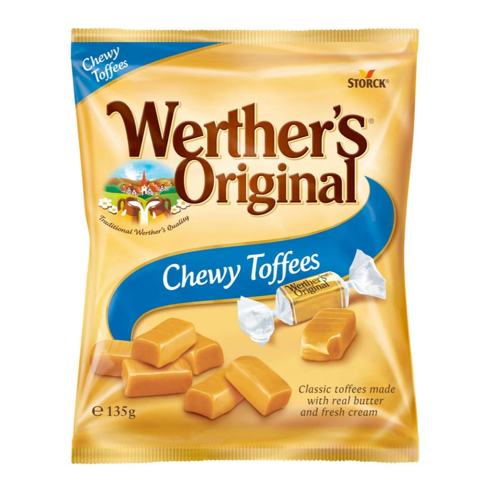 Enjoy the rich. buttery flavour of Werther’s Original Chewy Toffees. Made with real butter and fresh cream. these toffees are soft and chewy. perfect for a sweet treat any time of day. Individually wrapped for convenience. they’re great for sharing or enjoying on the go.