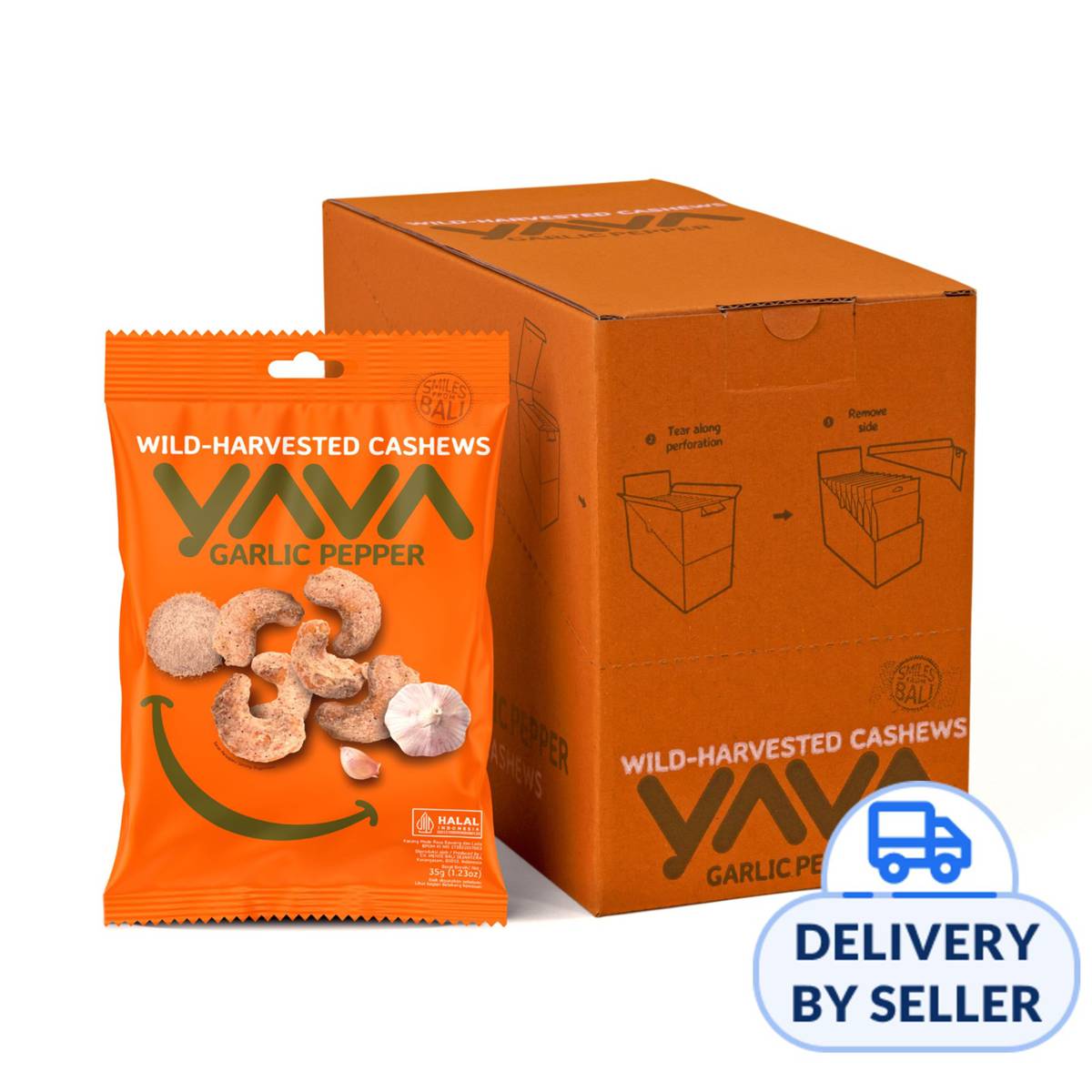 | KEY INFORMATION | YAVA selects creamy cashews and rolls them in a roasted garlic – pepper mix — all to bring you the biggest smiles! |