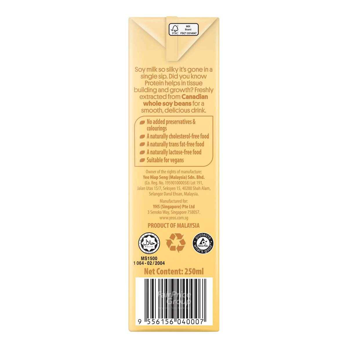 | – | • Made with whole soy beans |