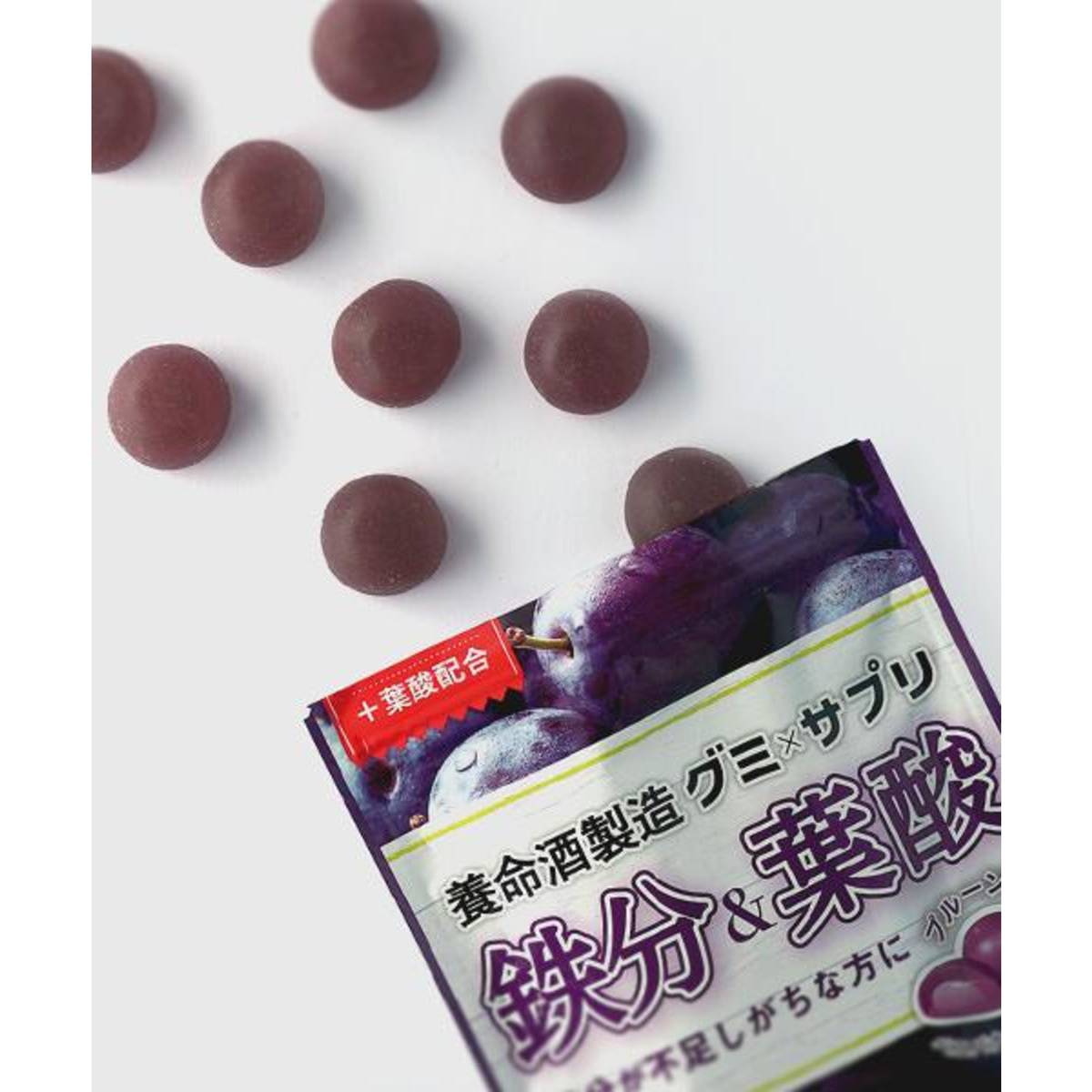 | KEY INFORMATION | Multiplies the function of gummy candy and supplement. You can take nutritions easily and tasty. 2-layer stracture gummy which outside tastes springy and inside tastes soft and mosit. Gummy supplement for a person who is a lack of Iron. We mixed high-demanded iron and Safflower extract based on our knowledge by our long-term studay for herbs. If you take about 5 drops per one day, you can have Iron 10mg intake(As much as 125 prunes). Ingredients: Glucose syrup (domestically produced), Sugar, Gelatin, Concentrated grape juice, Concentrated Japanese plum juice, Oblate powder, Royal jelly, Safflower extract / Sorbitol, Acid, Gelatinizer (Pectin), Fravoring, Brightener, Ferric pyrophosphate, Coloring (Red cabbage, Gardenia), Emulsifier, Folic acid |
