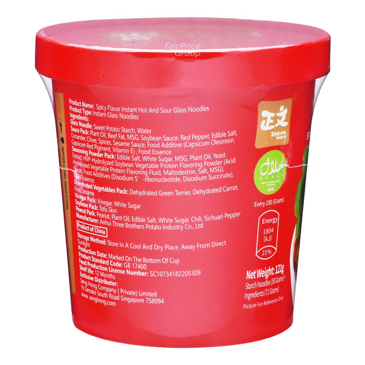 | KEY INFORMATION | 1st English Labelled Hot & Sour Instant Glass Noodle, Halal certified. Chongqin hotpot in a cup! Zhengwen Cup Vermicelli is made from sweet potato starch, popular for its numbingly spicy, flavorful soup broth. This cup is satisfying to your stomach, and exciting to your taste buds. |