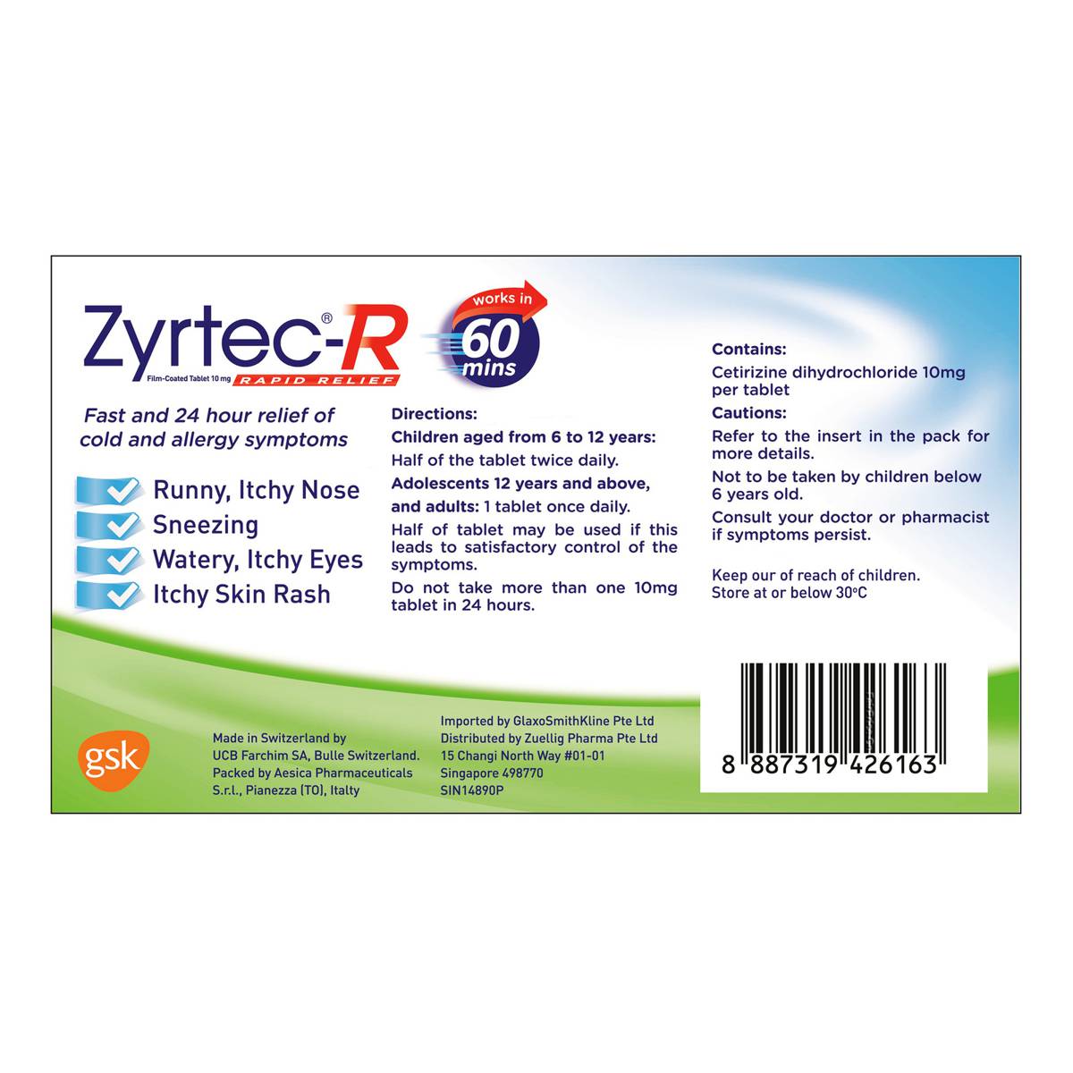 | – | Zyrtec-R fast relief of cold and allergy symptoms: |